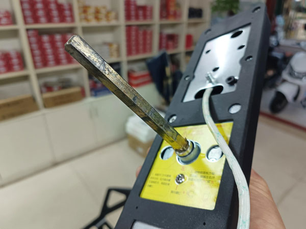 注意事项:如果防盗门特别薄,而我们的连接管又长了一点,这时我们可以考虑用角磨机将连接管两头丝口锯掉一点点,这样缩短了连接管的长度,又不会影响连接管固定在外面板上。